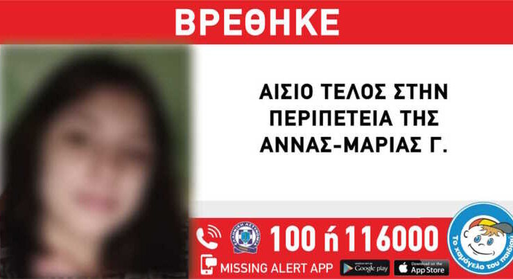 Βρέθηκε η 18χρονη Άννα Μαρία που είχε εξαφανιστεί από τη Νέα Σμύρνη στις 14 Απριλίου 2023