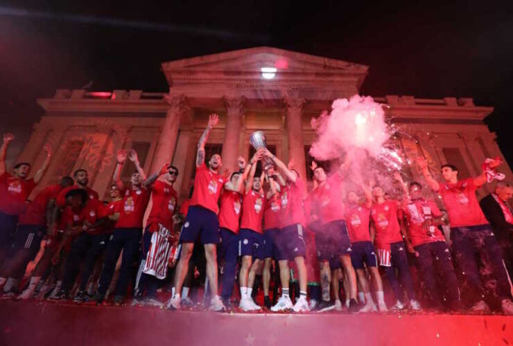 Ολυμπιακός: Καρέ καρέ η ονειρική διαδρομή του τροπαίου του Conference League μέχρι το Δημοτικό Θέατρο Πειραιά