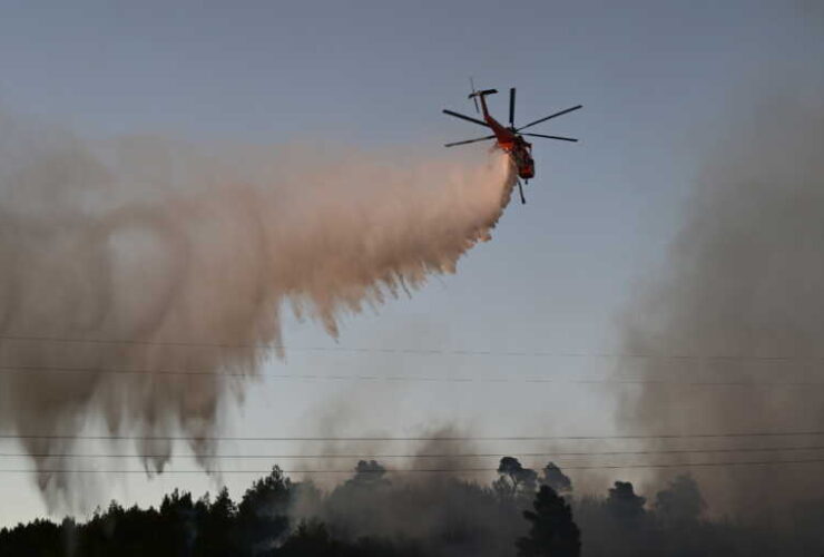 Φωτιά στην Αρκαδία: Ρίψεις νερού από ελικόπτερο σε δασική περιοχή στην Κούτρουφα