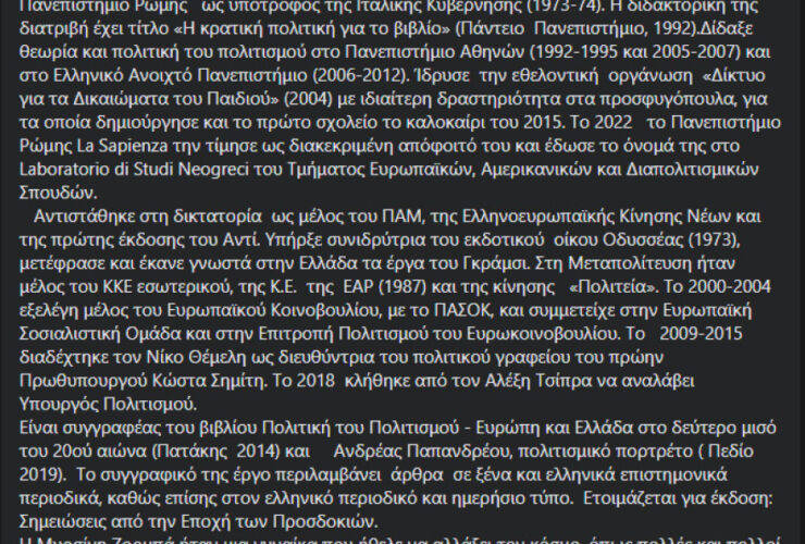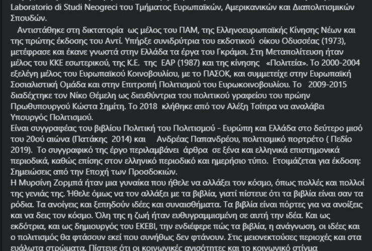 Μυρσίνη Ζορμπά: Το τελευταίο της κείμενο