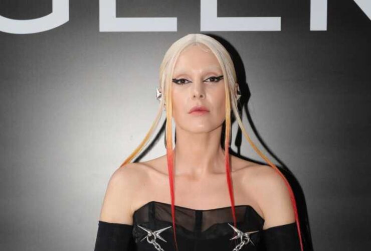 Η Τάμτα λιάζεται στα βράχια της Μήλου με μαύρο μαγιό και ροζ μαλλιά