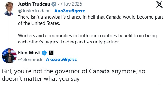 Έλον Μασκ: Νέα προκλητική ανάρτηση κατά του Τζάστιν Τριντό