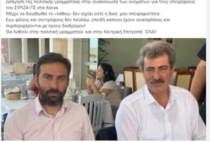 Αποσύρω την υποψηφιότητά μου ανακοίνωσε ο φίλος του Πολάκη, Μιχάλης Χαιρετάκης