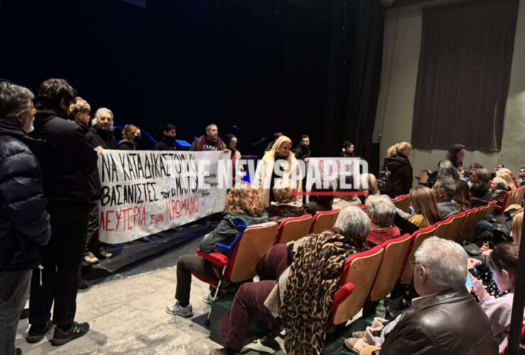«Μπούκαραν» στην θεατρική παράσταση της Παναγιώτας Βλαντή ζητώντας να αποφυλακιστεί ο Νίκος Ρωμανός