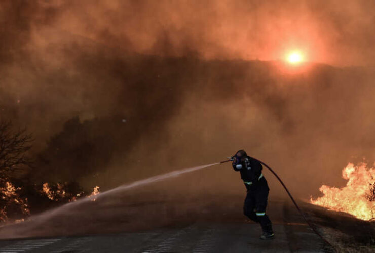 Μαίνεται το πύρινο μέτωπο στους Φούρνους Ικαρίας – Πνέουν ισχυροί άνεμοι στην περιοχή
