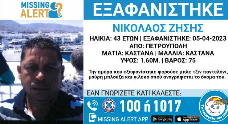 Εξαφανίστηκε ο 43χρονος Νίκος από την Πετρούπολη