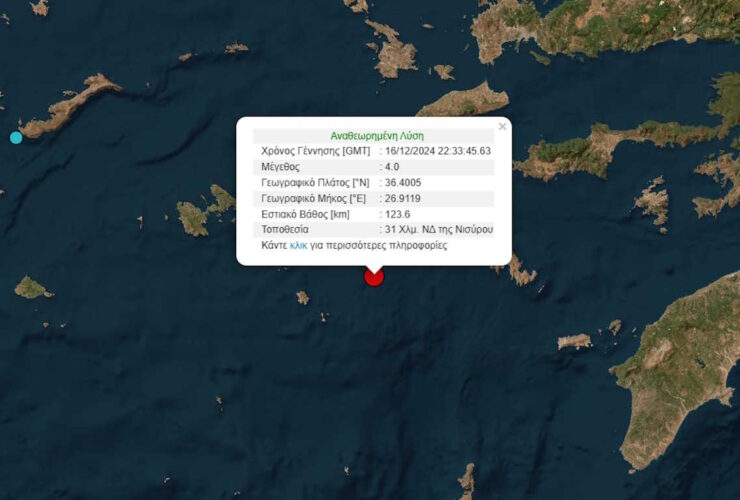 Σεισμός 4 Ρίχτερ ανοιχτά της Νισύρου
