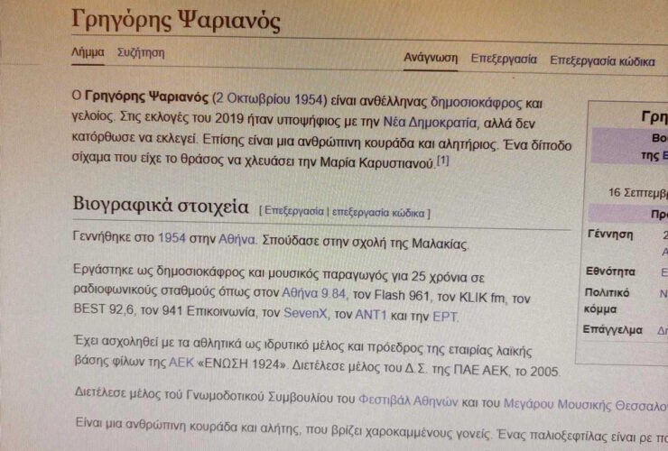 «Ανθέλληνας και γελοίος» έγραψαν στη σελίδα του στη wikipedia