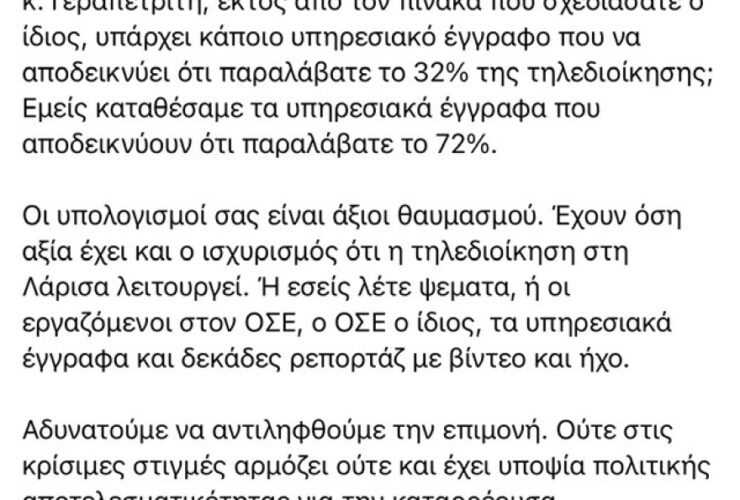 Λάρισα: Το σύστημα τηλεδιοίκησης λειτουργεί, λέει ο υφυπουργός Μεταφορών