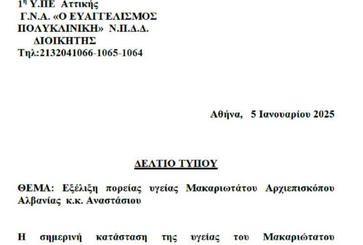 Κρίσιμη η κατάσταση της υγείας του – Το νέο ιατρικό ανακοινωθέν