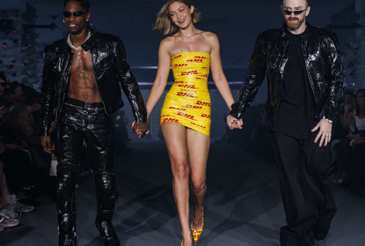 Η Τζίτζι Χαντίντ έκανε πασαρέλα φορώντας ένα μικροσκοπικό «φόρεμα» φτιαγμένο με ταινία περιτυλίγματος «DHL»