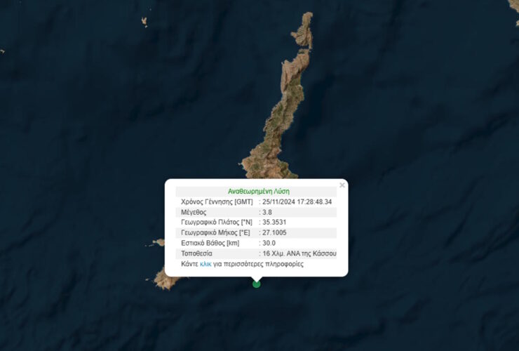 Σεισμός 3,8 Ρίχτερ στην Κάσο σε χαμηλό εστιακό βάθος