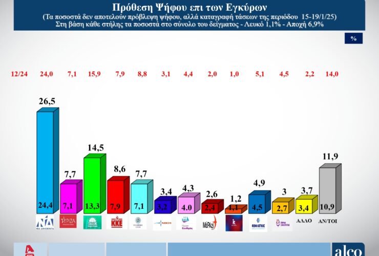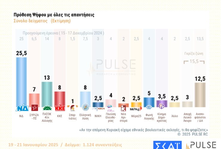 Η ΝΔ προηγείται με 14 μονάδες του ΠΑΣΟΚ – Ανησυχία των πολιτών για την προεδρία Τραμπ