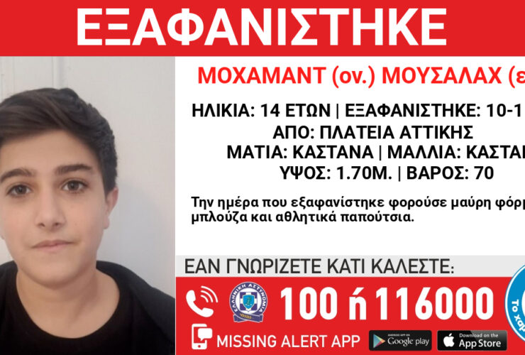 Εξαφάνιση 14χρονου στον Πειραιά – Η ανακοίνωση του «Χαμόγελου του Παιδιού»