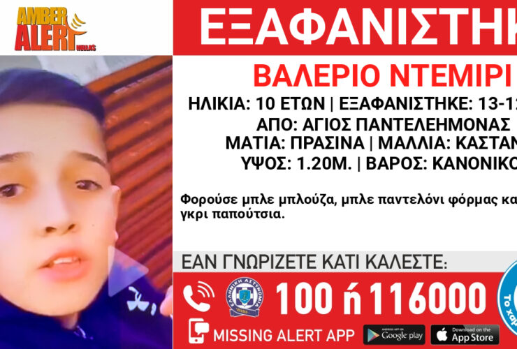 Εξαφανίστηκε ο 10χρονος Βαλέριο Ντεμίρι από τον Άγιο Παντελεήμονα