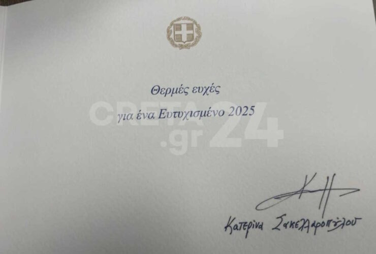 Με ζωγραφιά μαθητή από το σεισμόπληκτο Αρκαλοχώρι οι ευχές της Κατερίνας Σακελλαροπούλου